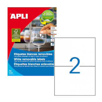 Etiquetas brancas com pontas retas, tamanho 210,0 x 148,0 mm com adesivo removível para usos múltiplos.