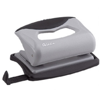 Compacto e pequeno. Em metal e plástico. Possui guia para papel.