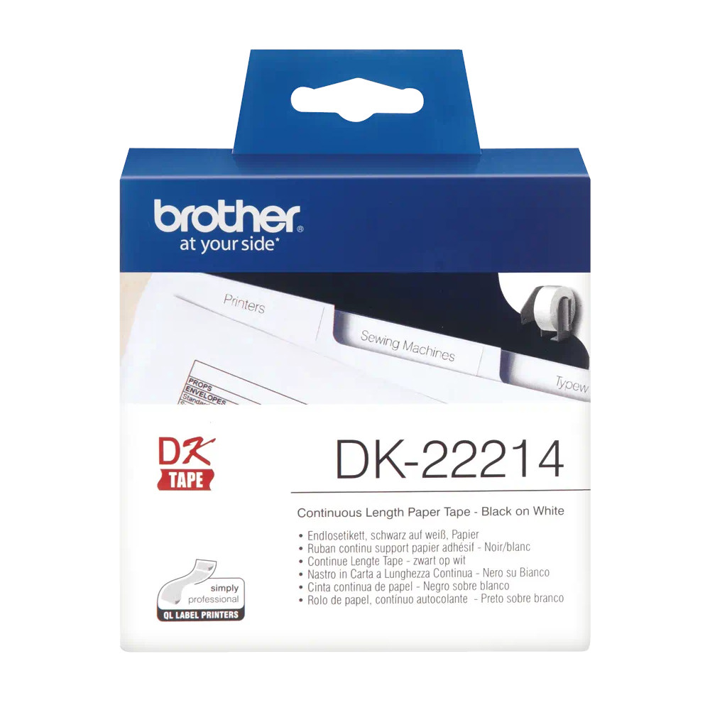 A fita contínua DK22214 (texto preto sobre fundo branco) permite criar etiquetas com tamanhos personalizados. Se o comprimento da informação a incluir na etiqueta varia, as fitas contínuas são a melhor opção. Pode incorporar de forma rápida e simples: imagens, logotipos, códigos de barras, datas ou qualquer outra informação.