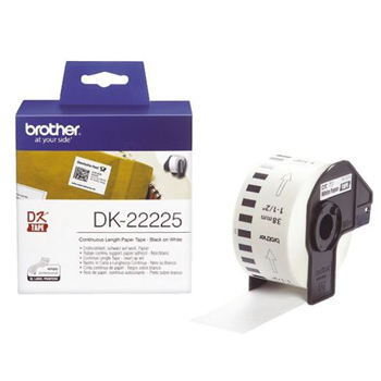 A fita contínua DK22225 (texto preto sobre fundo branco) permite criar etiquetas com tamanhos personalizados. Se o comprimento da informação a incluir na etiqueta varia, as fitas contínuas são a melhor opção. Pode incorporar de forma rápida e simples: imagens, logotipos, códigos de barras, datas ou qualquer outra informação.